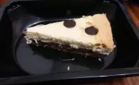 Митболы с брусничным соусом показались сегодня чуть соленоватыми. Паста пенне норм, но сыра хотелось бы побольше. А салат цезарь прям порадовал. Курочки много, соуса достаточно. Вообще цезарь один из моих любимых салатов и я к нему особенно трепетно отношусь. А чизкейк с шоколадом так вообще бомба! Тут мне прямо угодили:)